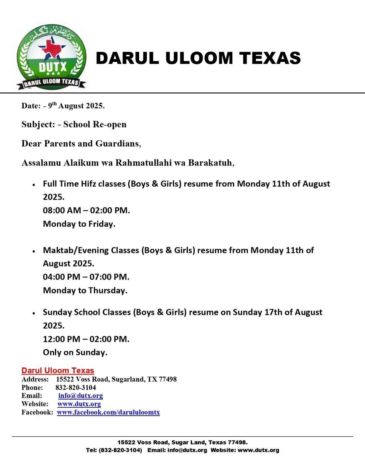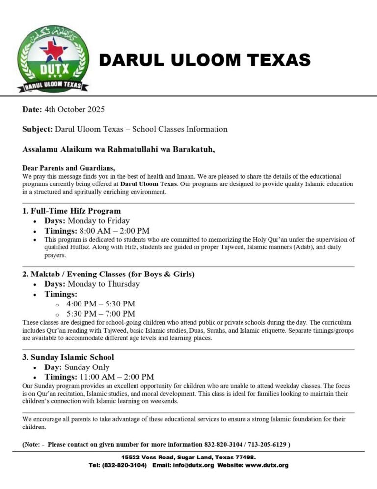 Assalāmu ʿalaykum wa raḥmatullāhi wa barakātuh 🌙✨ Welcome to Darul Uloom Texas 📚🕌🌟